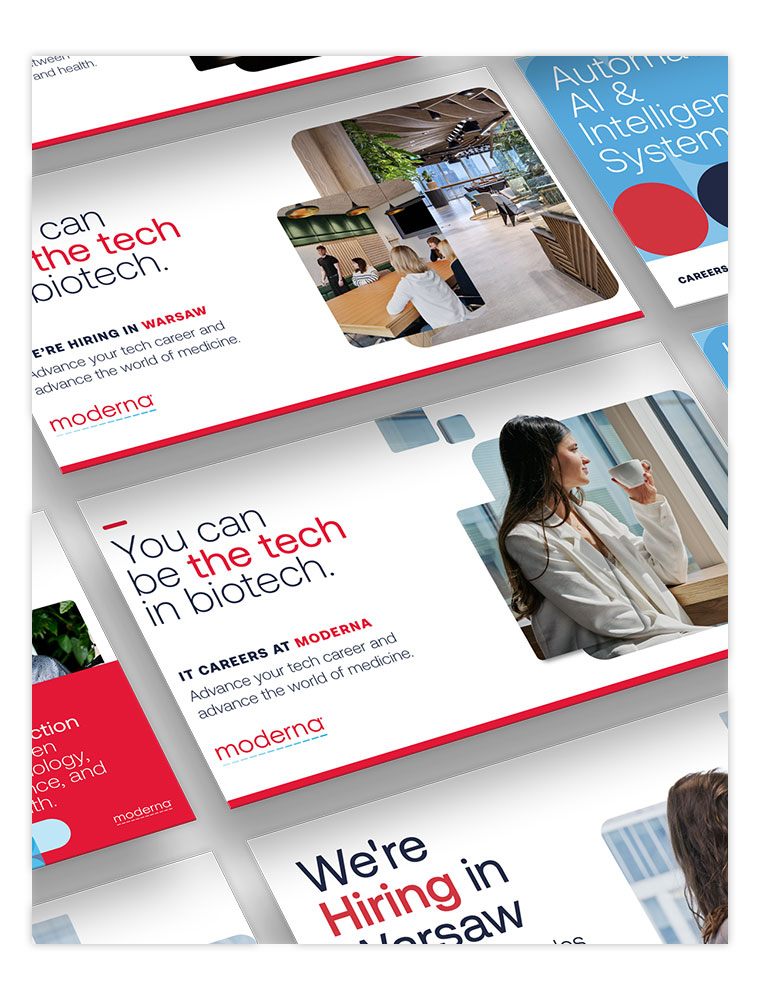 Moderna needed to build brand awareness to support their hiring strategy in Warsaw, Poland. This was the site of their new Digital Hub, creating openings for a wide range of specialist tech roles in areas such Global Infrastructure, Architecture and Software Engineering. They needed to position themselves as a technology innovator – yet also challenge the perception that they were just the ‘vaccine company’.